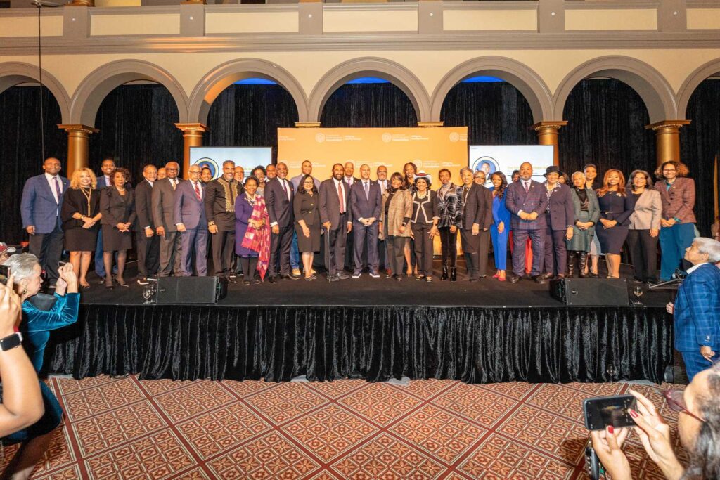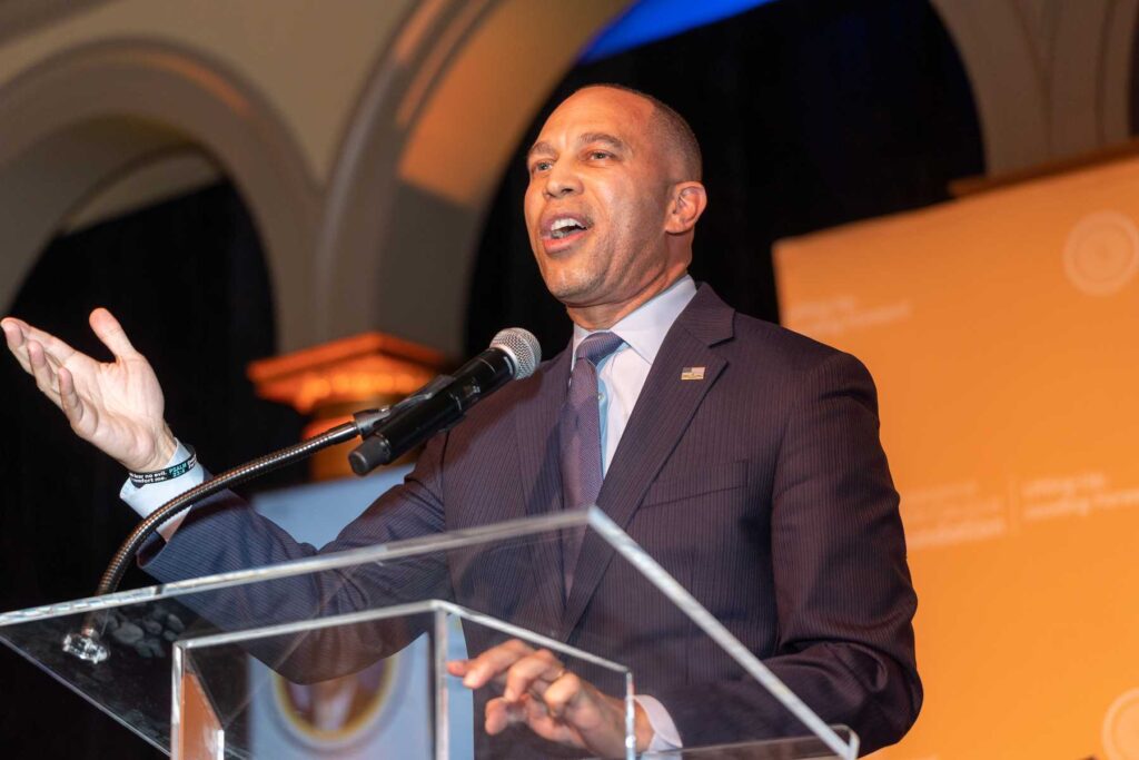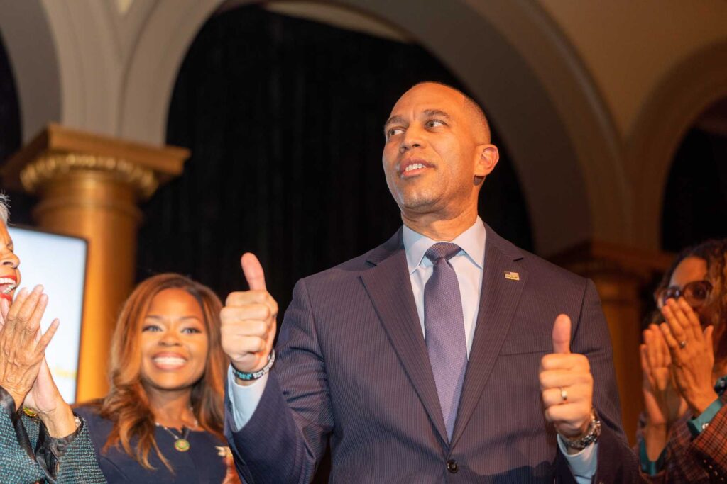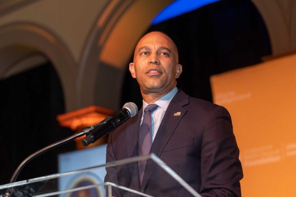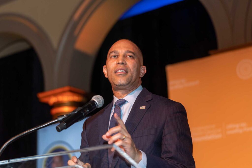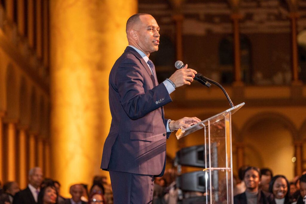 On February 28, 2023, the Congressional Black Caucus Foundation hosted a reception in honor of the historic election of The Honorable Hakeem Jeffries, as the new leader of the House Democratic Caucus and as the first Black lawmaker to lead a political party. The evening was highlighted with remarks from fellow Congressional Black Caucus members including Representative Terri A. Sewell, Board Chair, Congressional Black Caucus Foundation; Representative Steven Horsford, Chair, Congressional Black Caucus; and Representative Gregory Meeks.