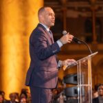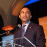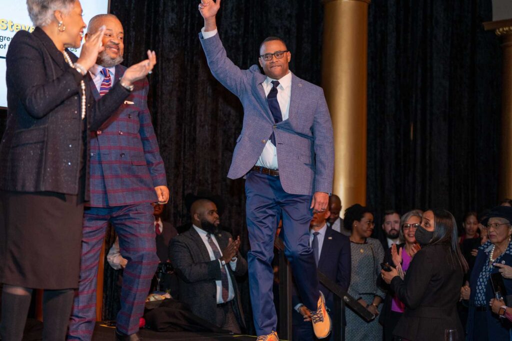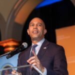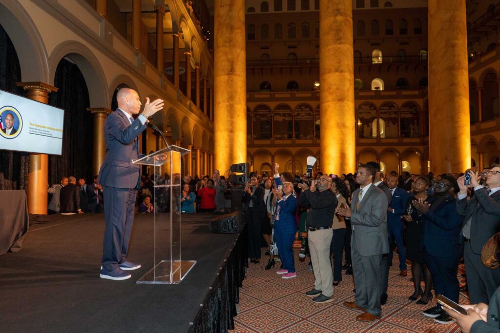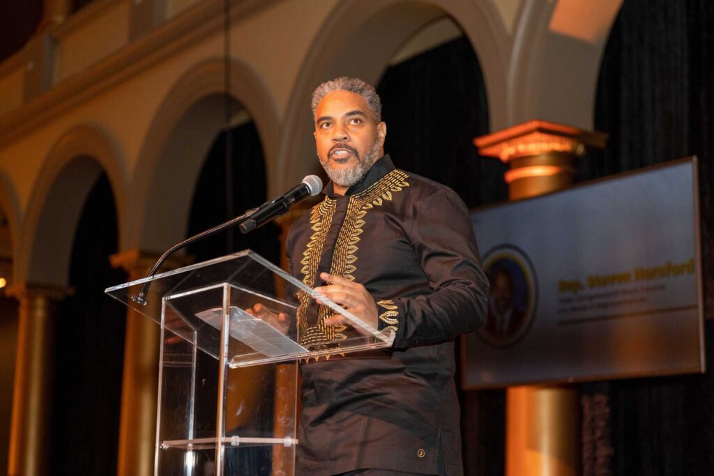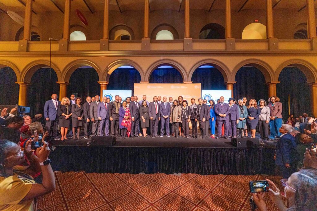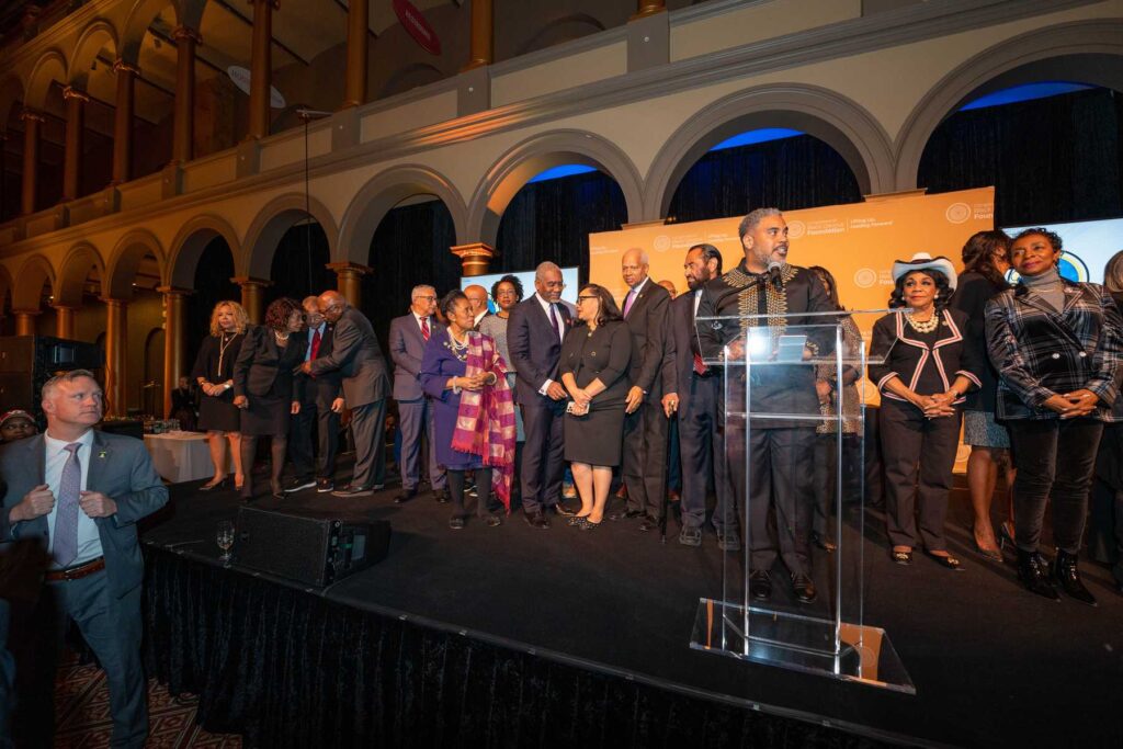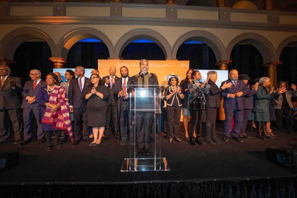 On February 28, 2023, the Congressional Black Caucus Foundation hosted a reception in honor of the historic election of The Honorable Hakeem Jeffries, as the new leader of the House Democratic Caucus and as the first Black lawmaker to lead a political party. The evening was highlighted with remarks from fellow Congressional Black Caucus members including Representative Terri A. Sewell, Board Chair, Congressional Black Caucus Foundation; Representative Steven Horsford, Chair, Congressional Black Caucus; and Representative Gregory Meeks.