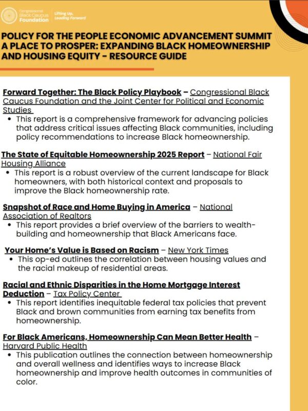 Resource Guide – A Place to Prosper: Expanding Black Homeownership and Housing Equity